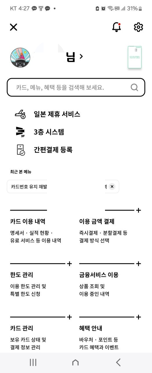 (💡 여기서 카드번호 변경 재발급을 진행할 수 있음)